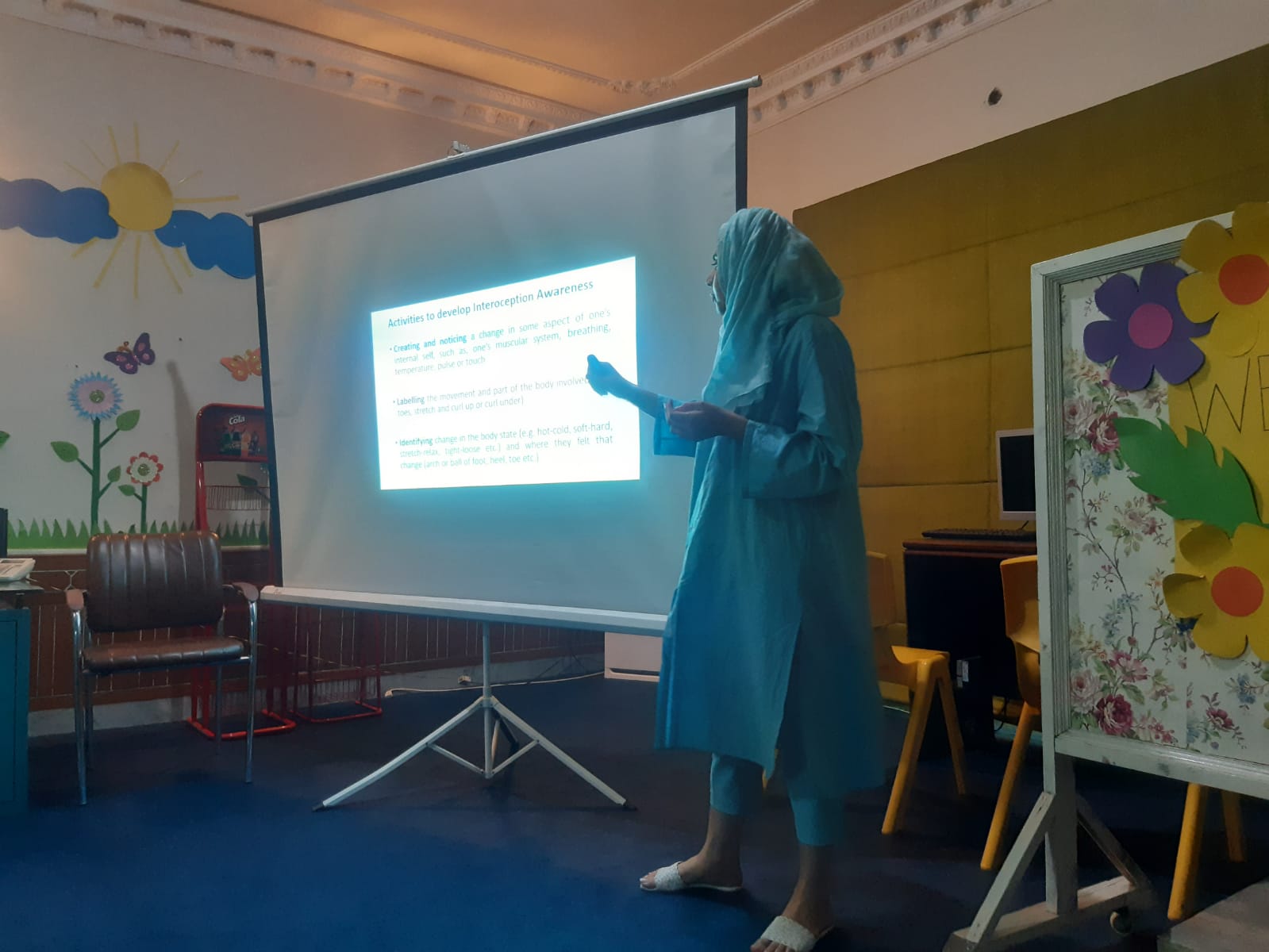 A workshop was conducted by ASDWT-Lahore at Headway Institute for Learning for parents and teachers. Presenter Ms. Munazza Saeed (Clinical Psychologist) talked about different Neurodevelopmental Disorders and management techniques appropriate for children with special needs. She also explained how different parenting styles affect outcomes. In the same training session, Dr. Husna Iftikhar Ahmed (Physiotherapist) stressed that many behavior issues in persons with Autism were due to poor sensory integration and processing issues. She gave a brief explanation on sensory integration therapy and accommodations to help children improve their behaviors.